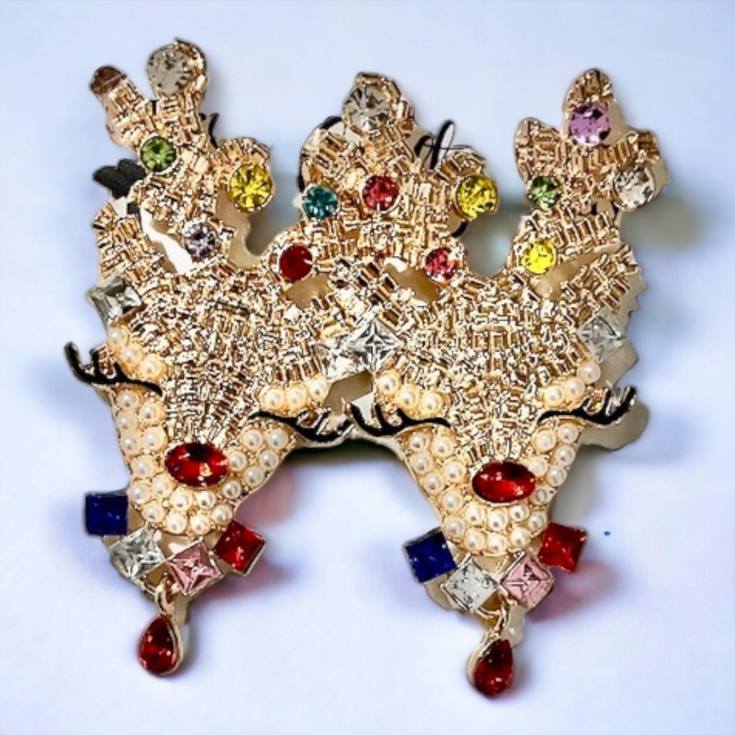 Dress up your holiday style with these fun, festive reindeer earrings! They sparkle with dozens of rhinestones for a glamorous look - perfect for your holiday party or a cozy night in! So put your antlers up and show off your bling! 🤩